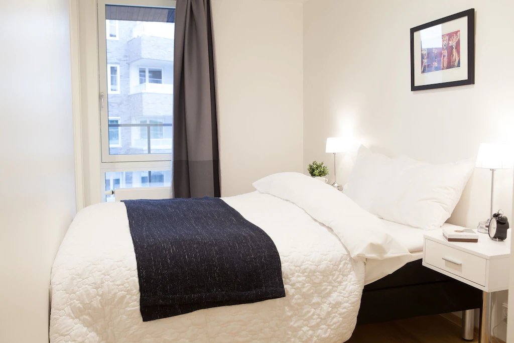 Fully equipped and furnished apartment in downtown Oslo. The apartment has one bedroom, a tiled bathroom and integrated living room and kitchen. The kitchen is fully equipped in such a degree that it can serve as an adequate alternative to own home. The apartments also have private balconies and are part of the Theatre Quarter, a residential quarter which was completed in 2008/2009. A short distance from the main train station, bus station and all of the metro lines, this gives you a good starting point if you want to experience Oslo and its surroundings.